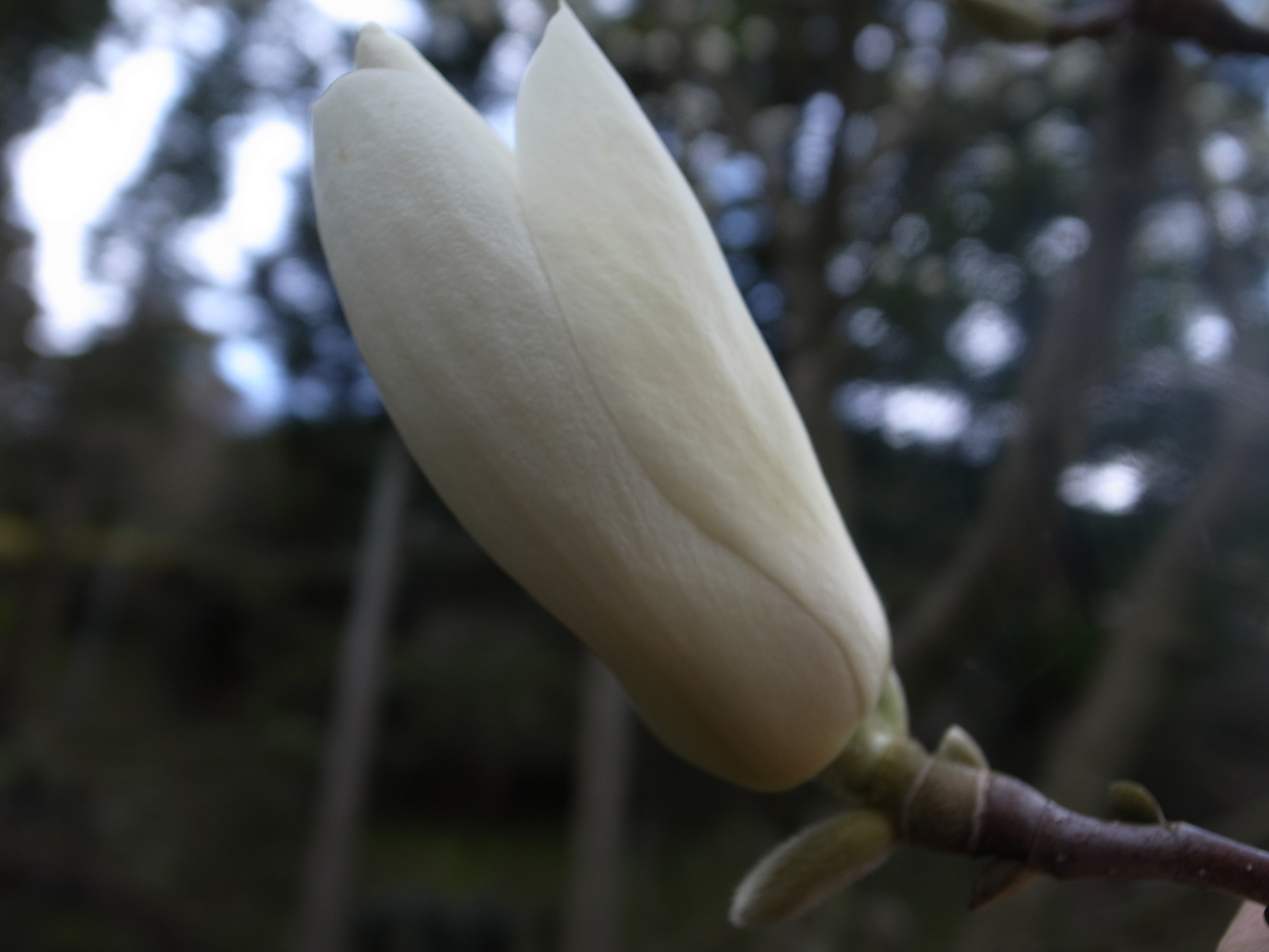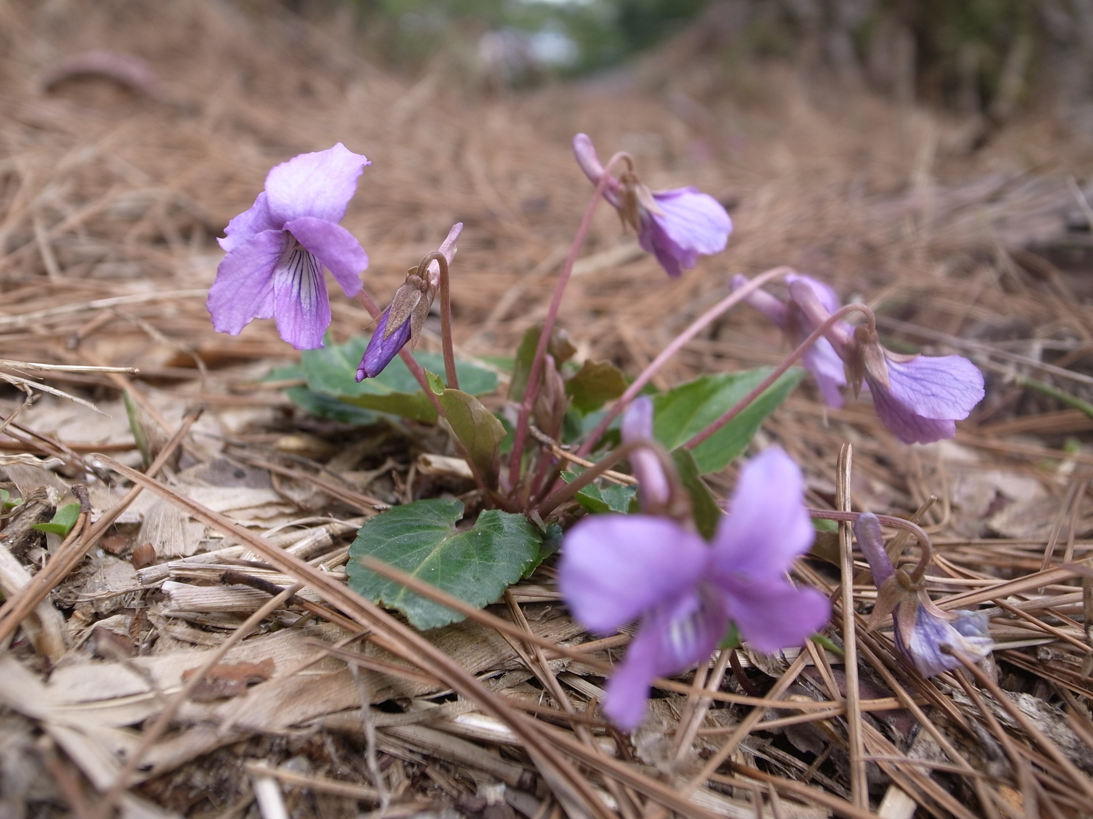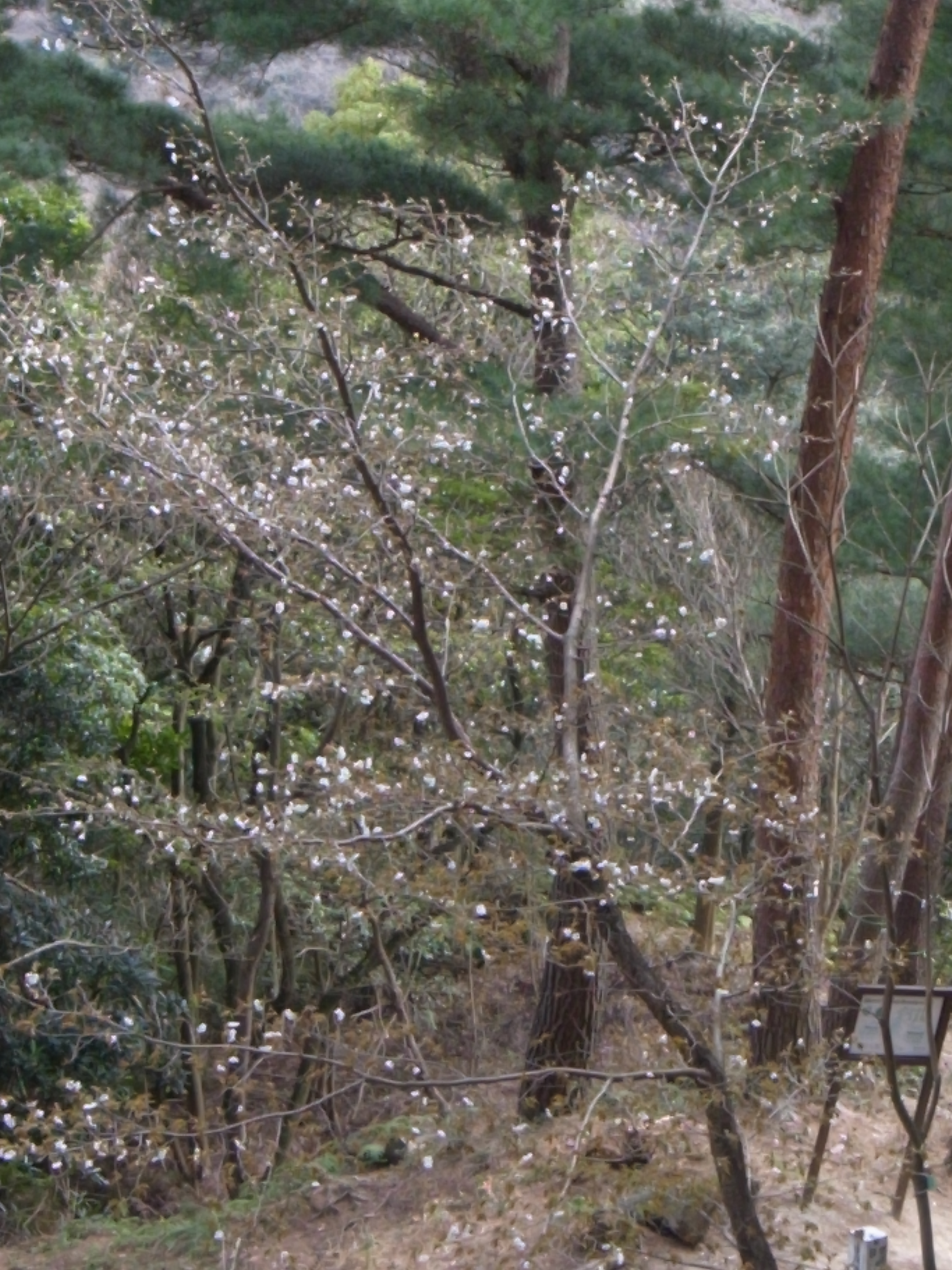 よく間伐されたスギ林の下に、冬には枯れている沢沿いに、白い小さな花をつけたワサビが生えていました。一度栽培したら、あとは自然に増えていったとか。希少種を含めてそんな植物がたくさんある魔法の森です。