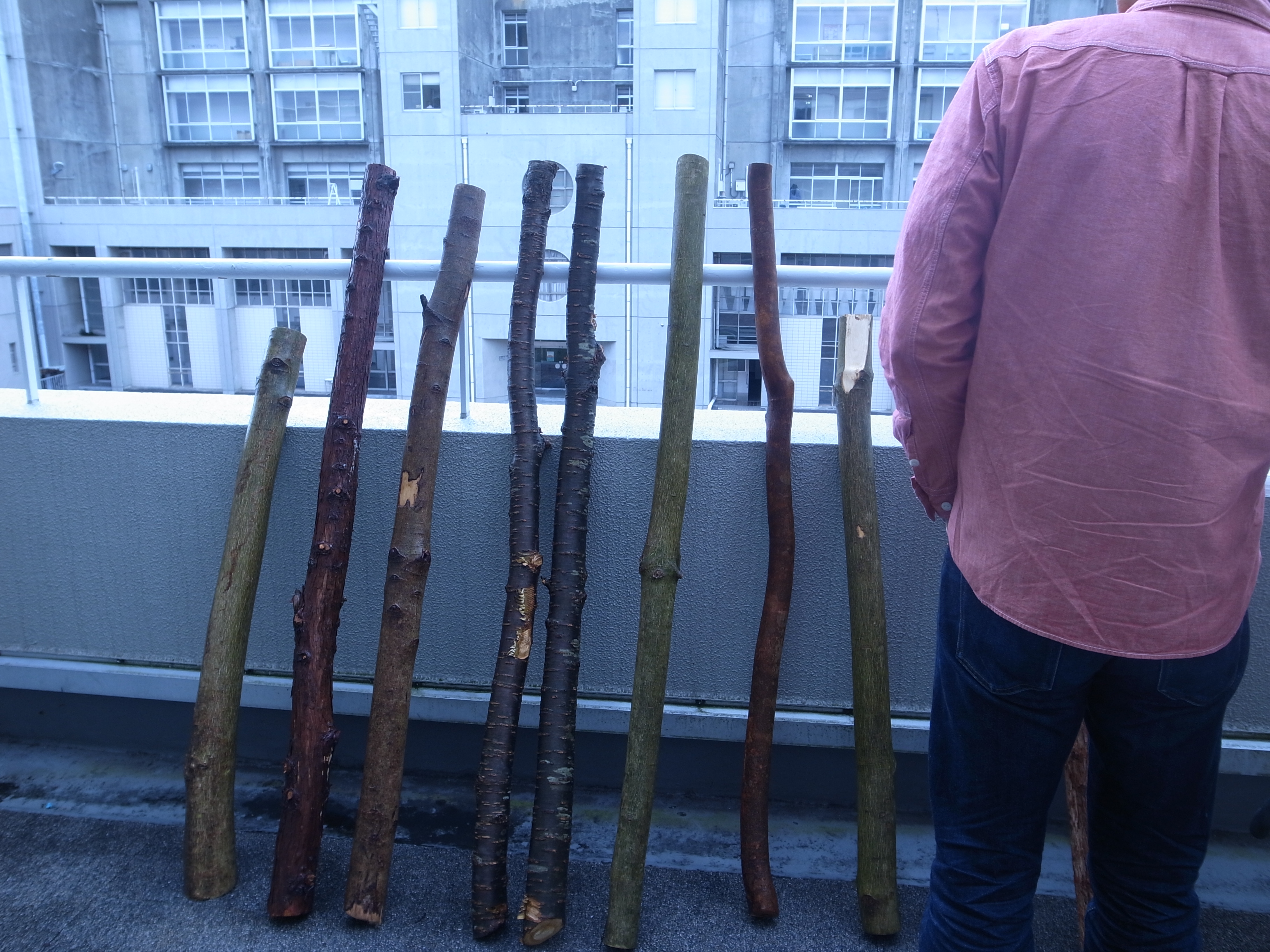 ヒノキですよ。学校の周囲の森林から伐りだして